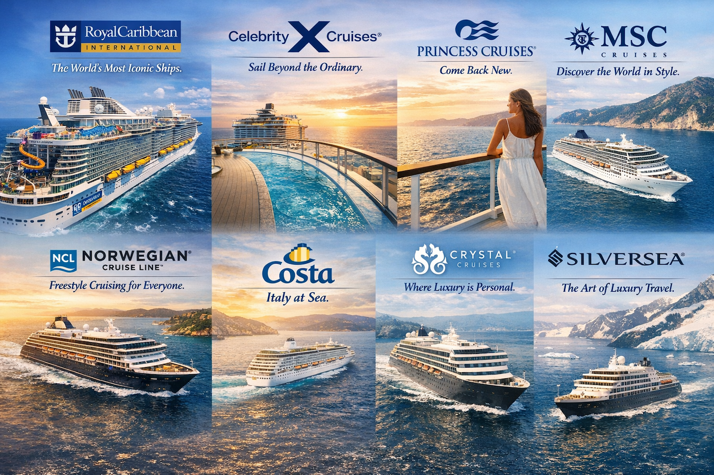 Royal Caribbean, Celebrity Cruises, Princess Cruises, MSC Cruises, Norwegian Cruise Line, Costa Cruises, Crystal Cruises, Silversea, Explora Journeys ve seçili Nehir Cruise markalarının satış temsilciliğini üstlenerek; standart cruise programlarının ötesine geçen, özenle tasarlanmış deniz yolculukları sunarız.